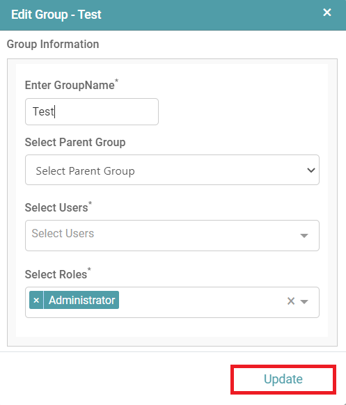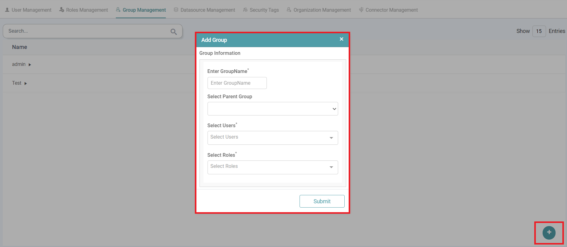 Step 4: You can add a group by entering the group information like the group name, parent group, select users and select roles. Click on the submit button.