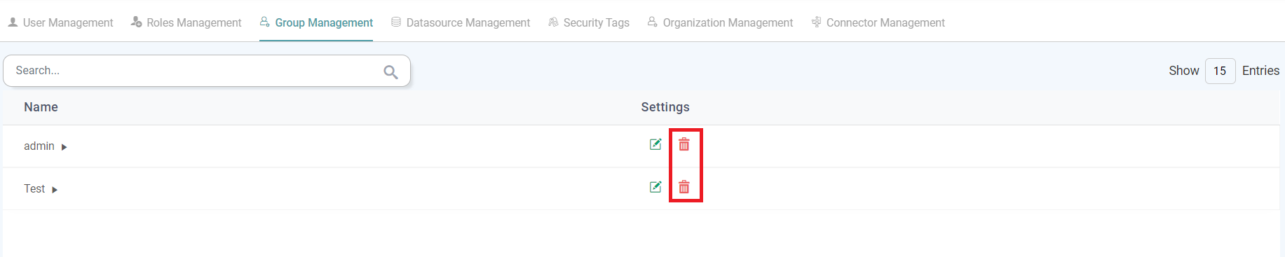Step 3: Click on the delete icon to delete the group/ sub-groups. (Refer to the image below).