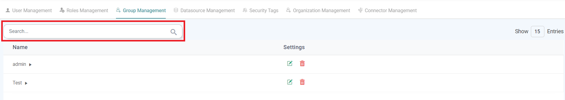 Step 2: In the search tab, enter the group name. The group with the text entered will be shown in the list. (Refer to the image below).