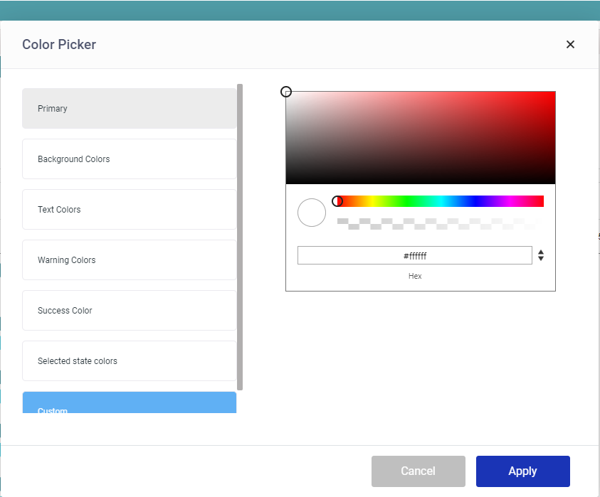 A color picker pop-up opens. Users can select the options that are already available. Click on “Apply” after selection. Under custom, users can select whichever color they like and in any shade. Click on “Apply” after selection. (Refer to the image below).