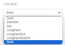Line Style– Line style has a lot of options. Select the option you need your line to be represented by. The Options available are “Dash”, “DashDot”, “Dot”, “LongDash”, “LongDashDot”, “LondDashDotDot”, and “Solid”. (Refer to the image below).