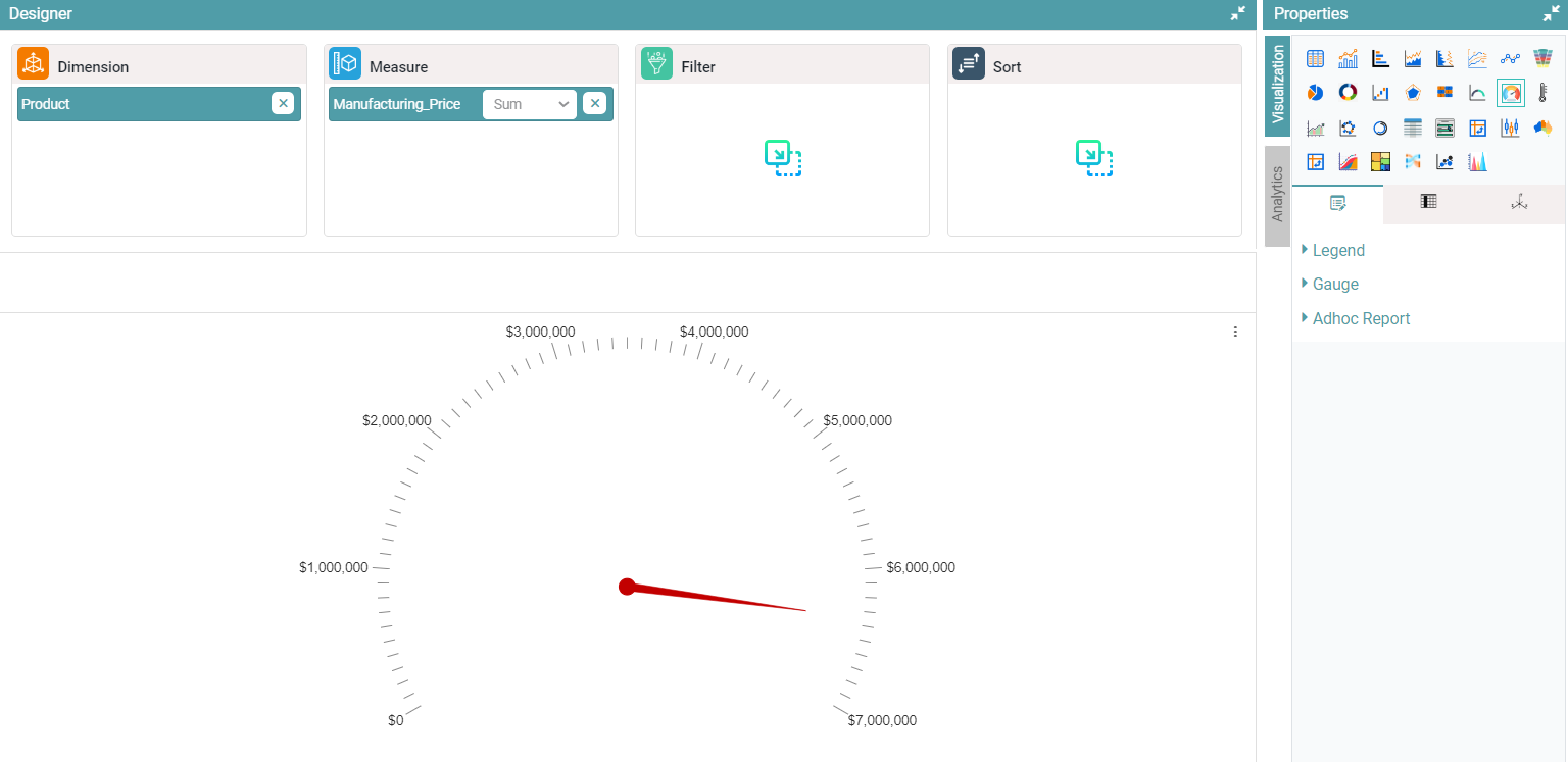 Step 2: Drag and drop the required columns in dimension and measure. The data is represented in the form of a Radial Gauge chart. (Refer to the image below).