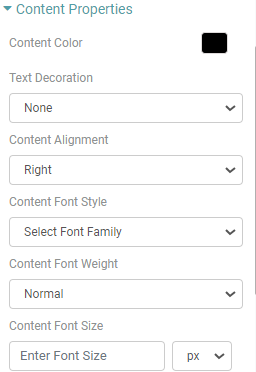 Step 3: You now have the option to customize the content on the table by navigating to the Content Properties option under the properties tab.