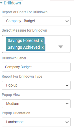 Step 5: Select chart/report from the dropdown. Select the Measure for drilldown.