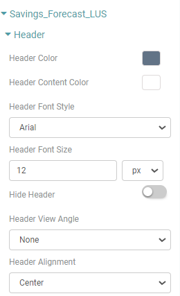 Step 4: To customize your Header, click on the header option. Here, you can change the header color, header content color for the column selected, header font style, header font size, hide the header, change the header view angle, align the header and change the font weight of the header. (Refer to the image below).
