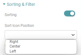 Step 4: You can sort the column by clicking the “Sorting” toggle wherein the data would be sorted between ascending and descending order. Customize the position of the sorting icon on the header by selecting from the options in the “Sort icon position” dropdown menu. (Refer to the image below).