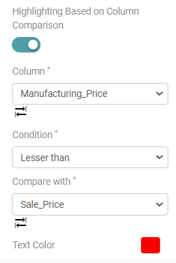 Step 3: Under ‘Table Column Setting’, you can select the Column, Condition and the other columns you want to compare the first column with.