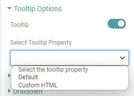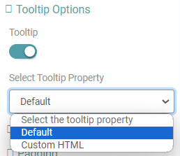 Step 3: Under ‘Tooltip options’, you can toggle on the Tooltip. Once this has been done, you can select the tooltip property from the dropdown. (Refer to the image below).