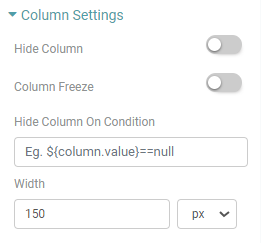 Step 4: You can Hide the column, freeze the column, hide column on condition and specify the width of a specific column. (Refer to the image below).