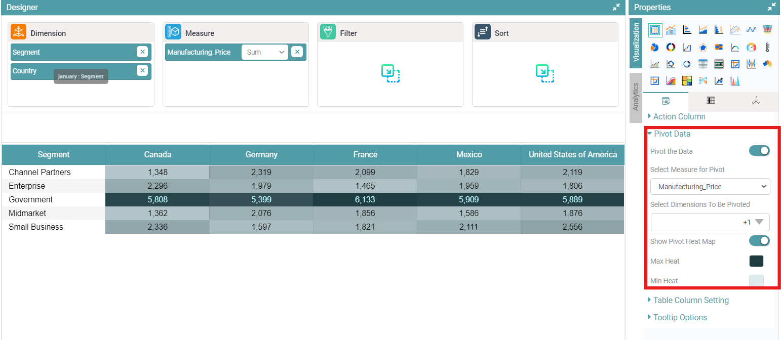 Step 4: Enable the show pivot heat map. You can see the Min Heat and Max Heat reflected in the chart. You can select the desired color of your choice. (Refer to the image below).