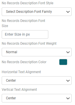 Step 3: Configure the appearance of the ‘No Records’ message by setting the template type, title and description text, font styles, sizes, weights, colors, and text alignment options. (Refer to the images below).
