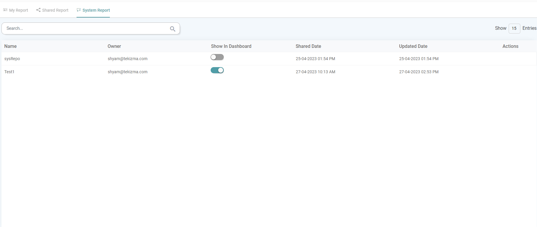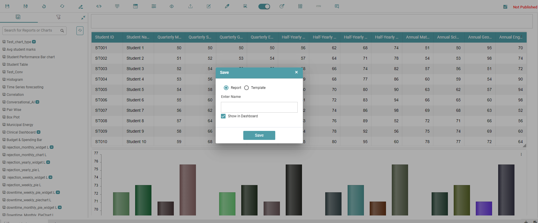 Note: You can choose not to show the created report on the dashboard. If at any point you want to show the said report on the dashboard, navigate to the Library and click on Report. Publish the said report and click on the show in dashboard option.