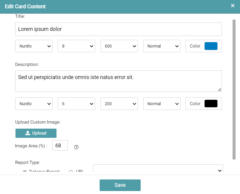 Step 8: You can add the title of the card, set a description, upload a custom image and link a report to the card.