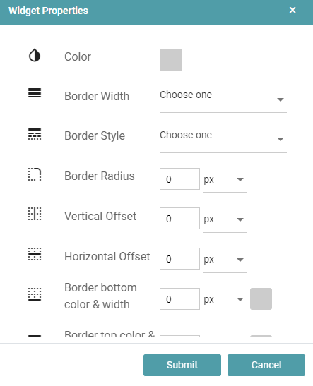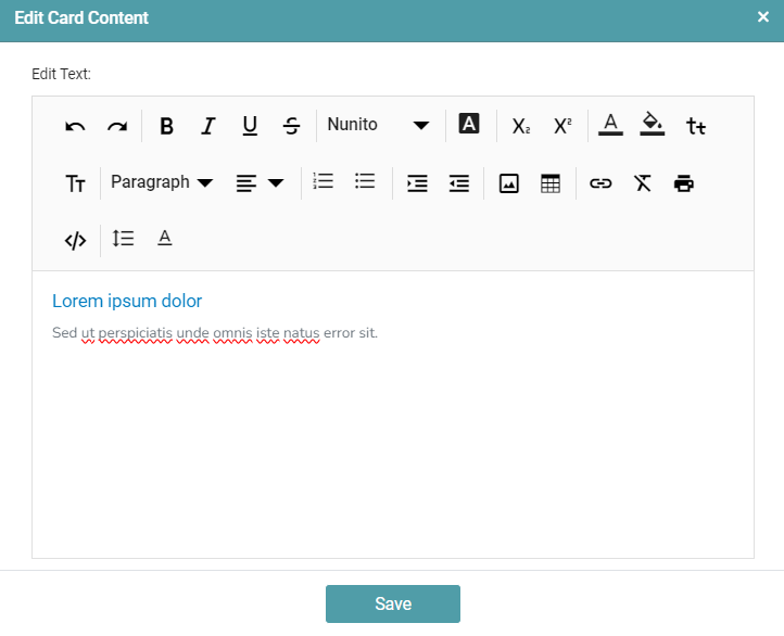In the Edit card content dialogue box, the user can edit every property present in the widget.