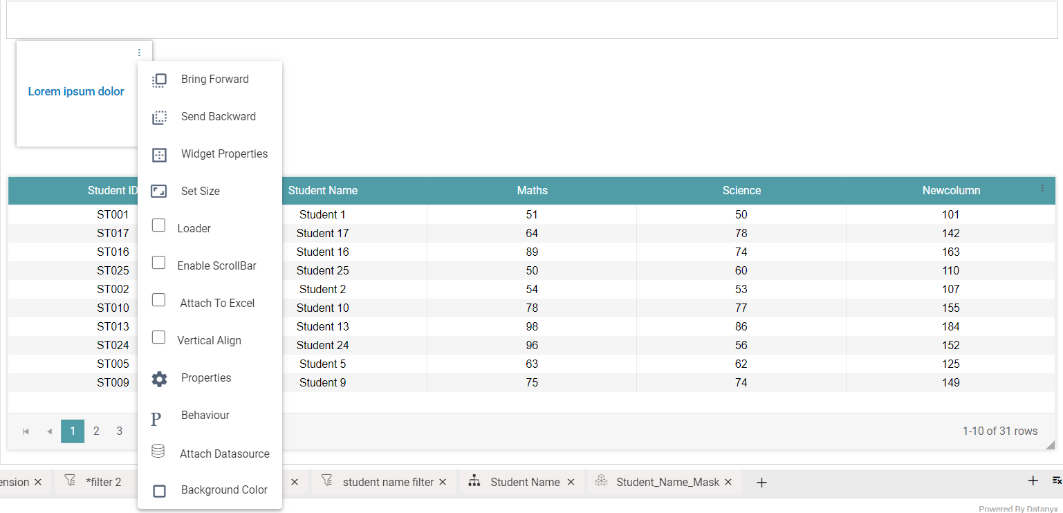 Step 2: Drag and drop the required column by clicking on the Data Sets dropdown. (Refer to the image below).