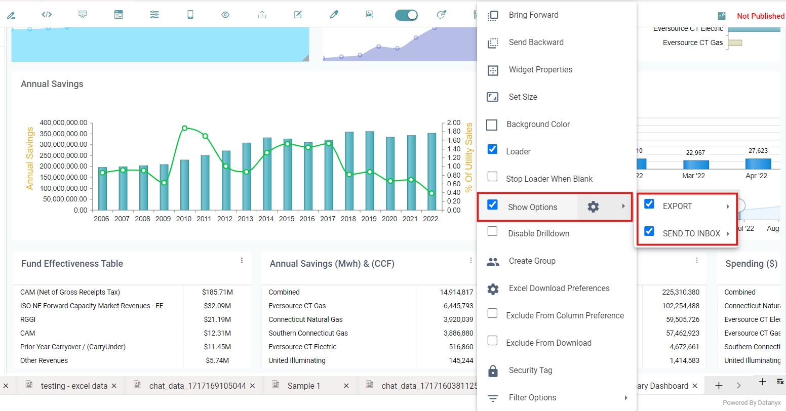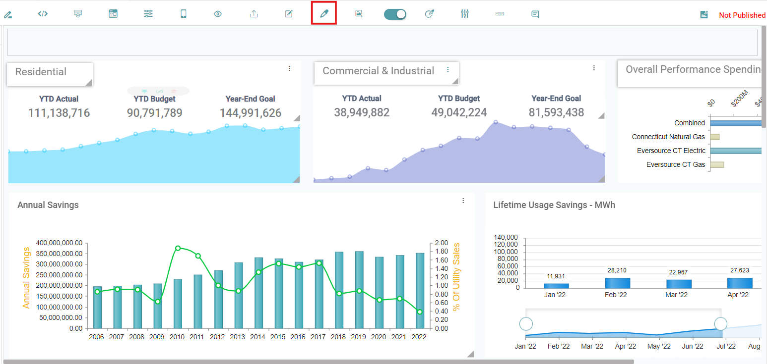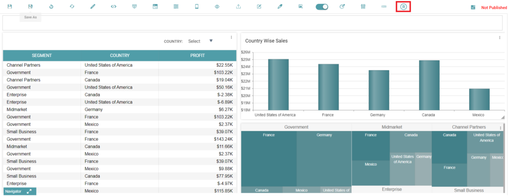 Step 5: After all the widgets have been changed, click on the save as icon. Name the report and click on save.