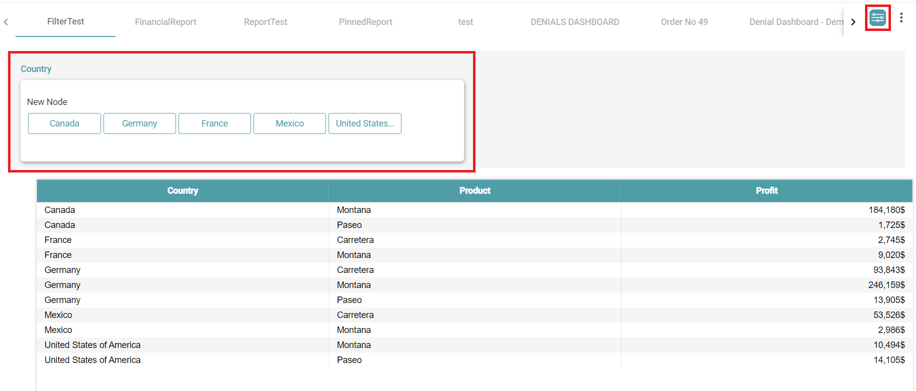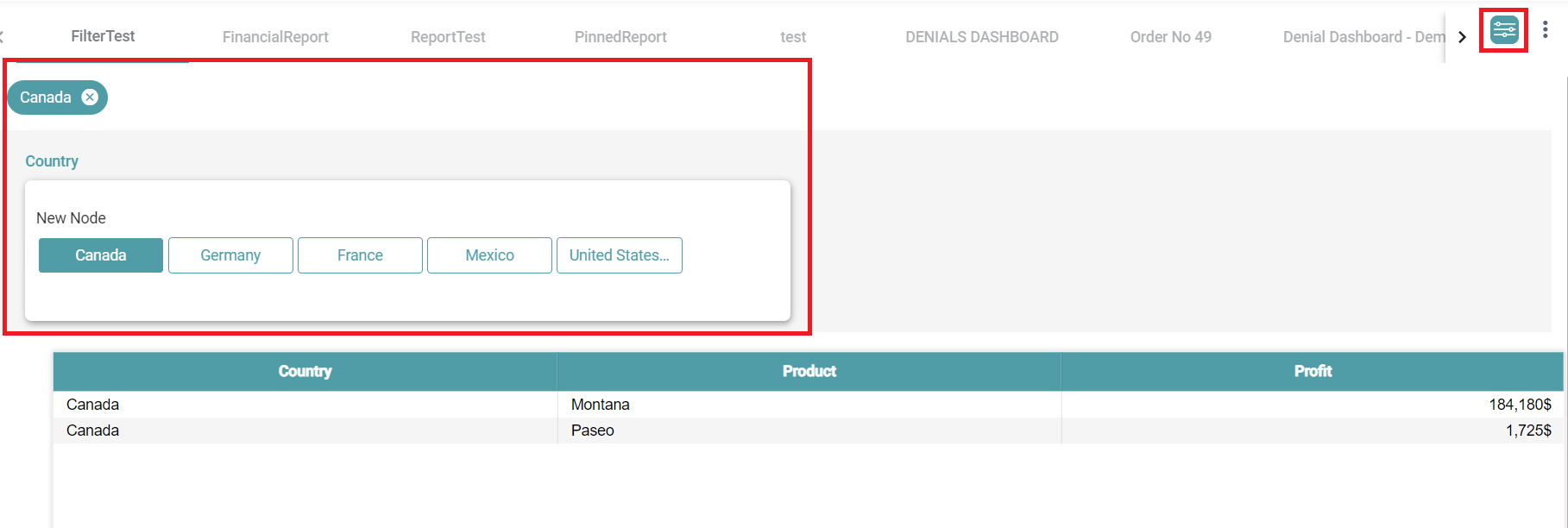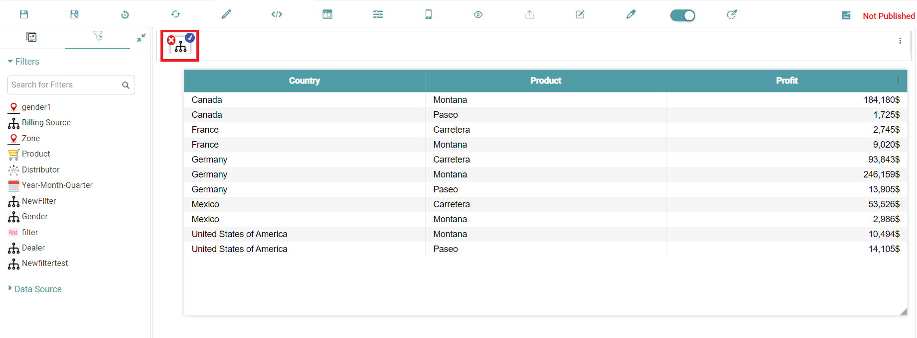 Step 5: The user can see that there is a ‘Close’ and ‘Edit’ icon on each of the columns selected to be filtered.