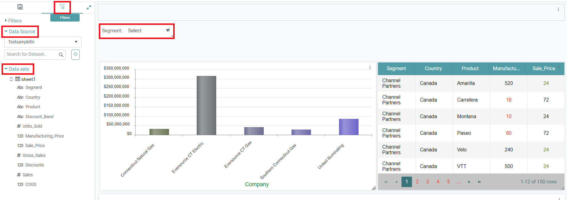 Step 3: Click on the filter icon. Select a Data Source from the dropdown and choose a dataset.