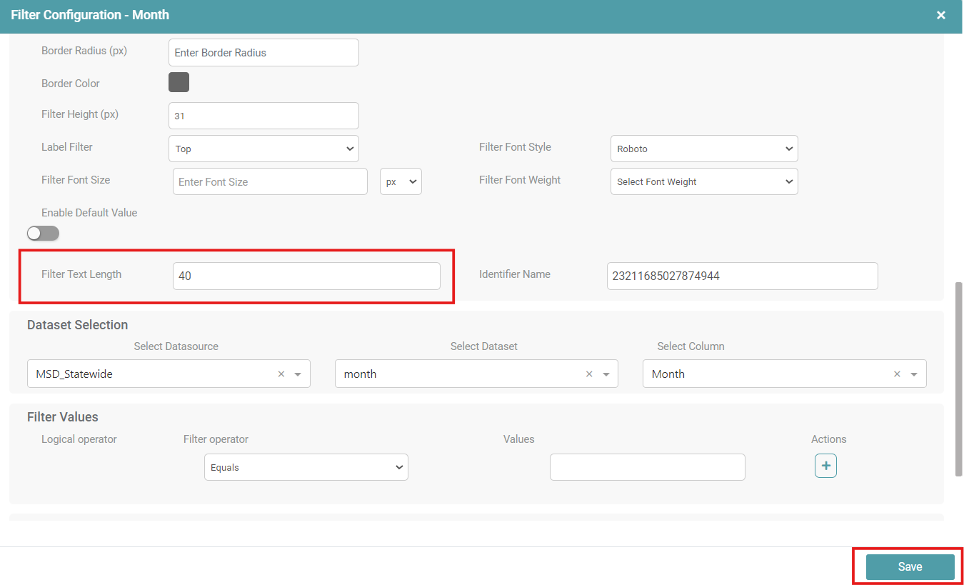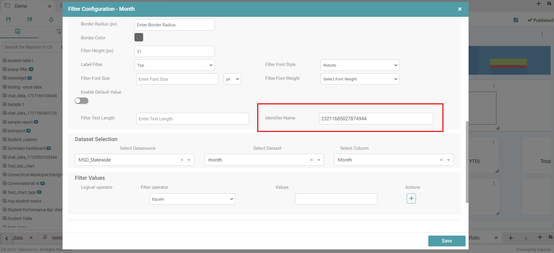Step 8: If one column has two filters then an identifier name is required. The identifier name makes filters unique. (Refer to the image below).