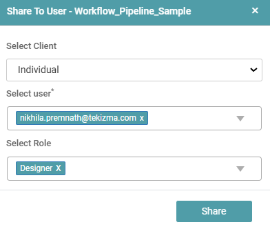 Step 2: Here, one needs to select the user with whom the workflows ought to be shared. Further, the role of the user needs to be selected.