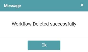Step 5: You will see another pop-up that indicates that the workflow has been deleted successfully. Click on the ‘Ok’ button. (Refer to the image below).