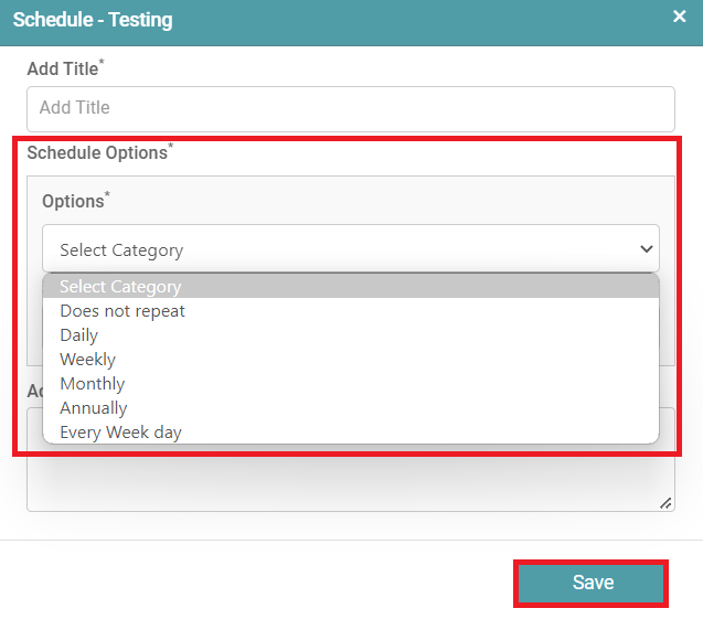 Step 3: Now, you are able to add title and schedule options. You need to select a category of display i.e., how the schedule is categorized. (Refer to the image below).