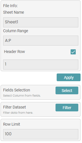 Step 11: You can also select the fields, filter the dataset and set the row limit. (Refer to the image below).