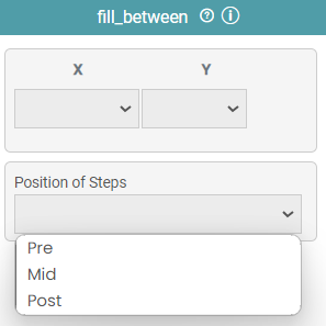 Step 3: Once a successful connection is made between ‘data import and fill between’, click on the “x” and “y” dropdown to choose the X and Y axis of the plot. You can also choose Position of Steps from the drop down. (Refer to the image below).