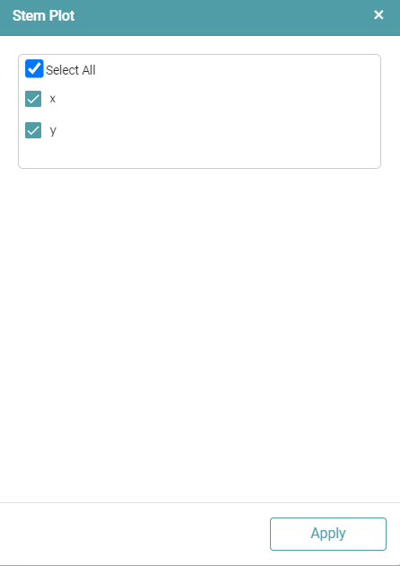 Step 3: Once a successful connection is made between ‘data import and stem plot’, click on the select button to choose the X and Y axis of the plot. A bar plot pop-up appears. (Refer to the images below).