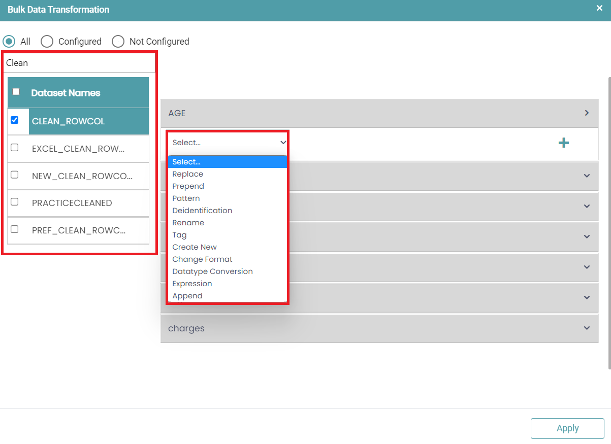 The ‘Actions/ Transformations’ for the Bulk Data Transformation is like that of Data transformation. [Refer to this Link: Actions].