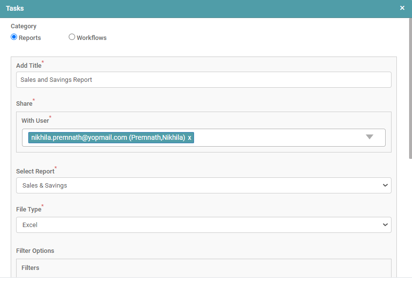Step 5: In the scenario where “Report” has been selected, add the title of the task, select the users with whom you want to share the report with.