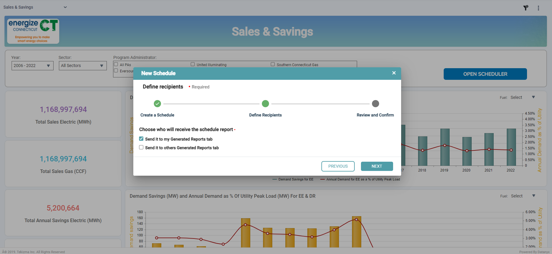Step 4: Next, define the recipients. You can choose who will receive the scheduled report by either sending it to your Generated Reports tab (your Inbox) or to others’ Generated Reports tabs. Then, click the “Next” button. (Refer to the image below).