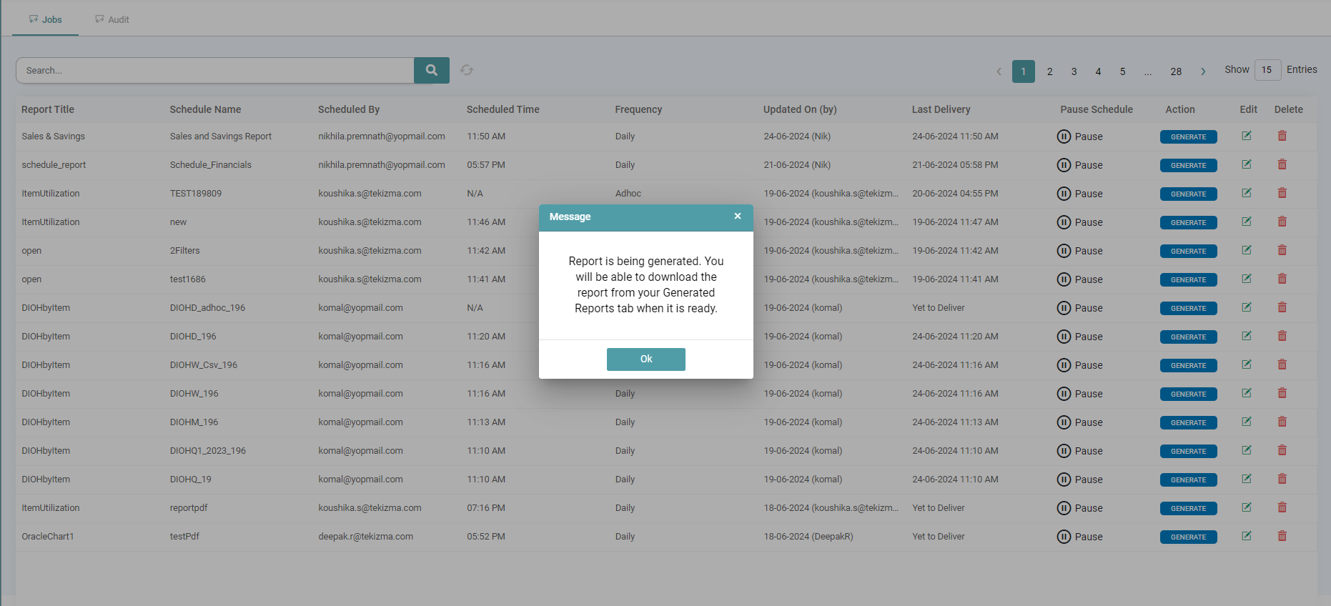 Step 6:A “Save Schedule” pop-up will appear, indicating that you can view and edit the report from the Reports tab (Jobs Tab). Click on the Ok button. (Refer to the image below).