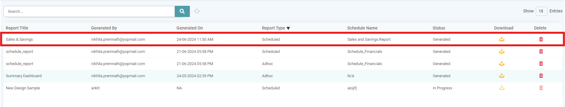 Step 7: Click on the Edit/ Delete Icons respectively to Edit or Delete the Report. The report will initially display “Yet to Deliver” as the delivery status. Once the report is delivered, the scheduled date and time will be shown. (Refer to the images below).